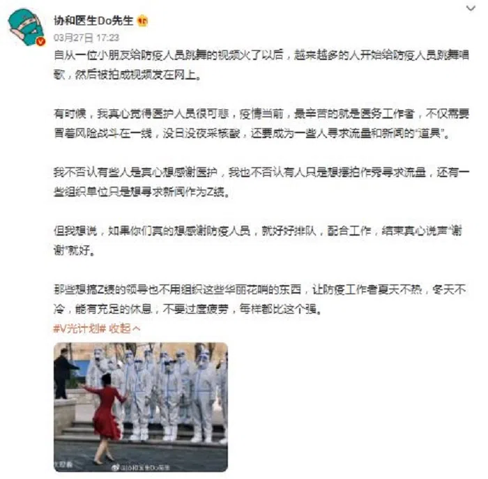 这些拍片者以独特的方式向医护人员表达谢意,但如今却在网上引起激烈反弹。