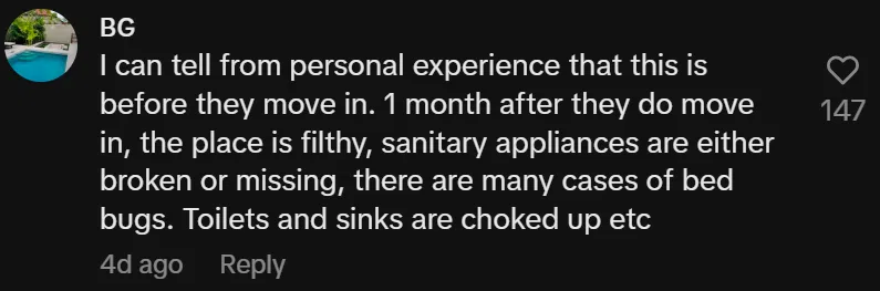 这样的留言在新加坡西雅客工宿舍 Westlite Singapore 的TikTok视频下方留言区比比皆是,而且并非夸大其词,而是看了以下视频画面后有感而发。