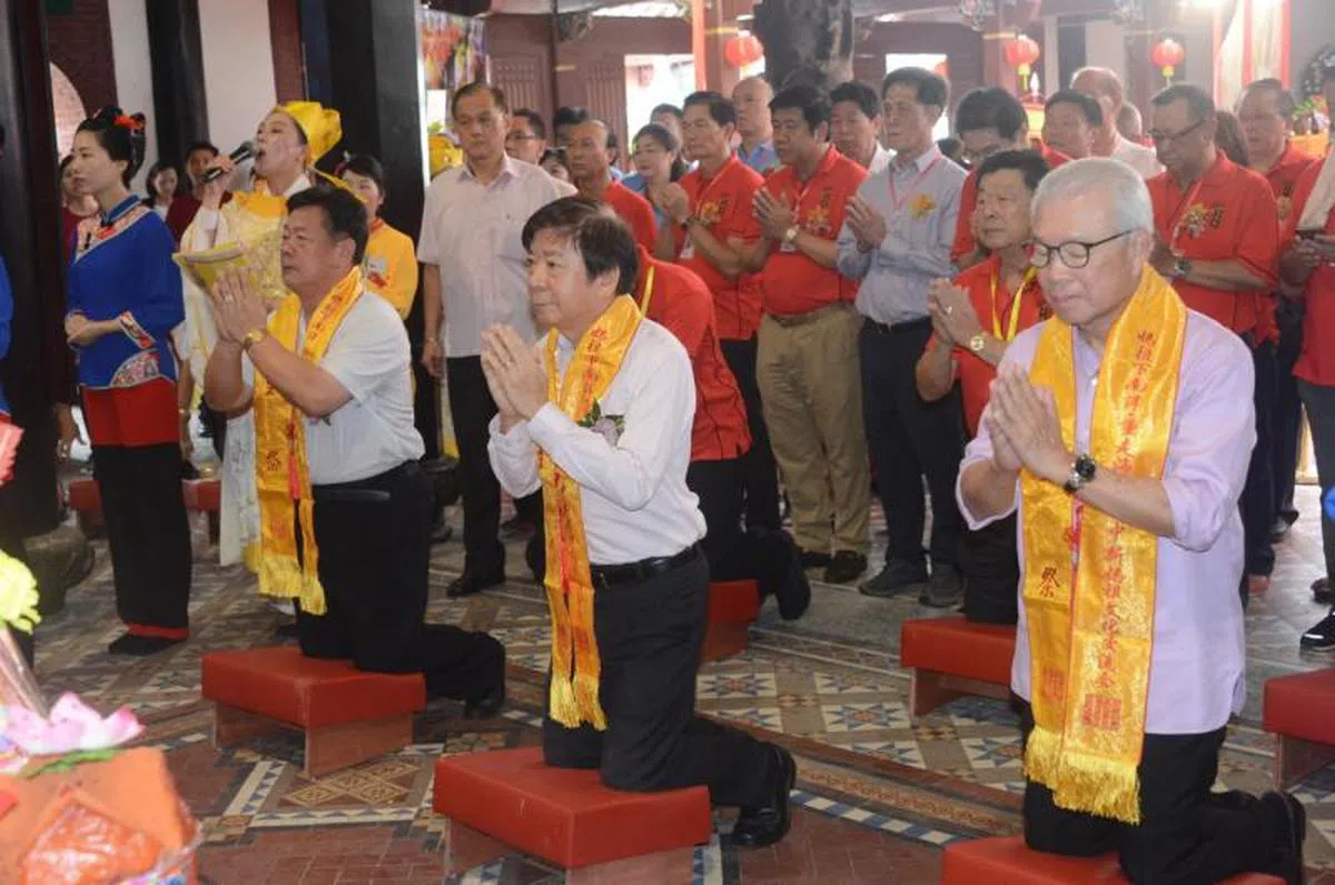新加坡基础建设统筹部长兼交通部长许文远这次也受邀以主祭人身份,参与了祭祀礼仪,还在妈祖面前行“三叩九跪”之礼。这是古代祭天的最高规格礼仪。根据清祀典,只有对“宣圣孔子、圣武关帝、女圣妈祖”才能行此大礼。