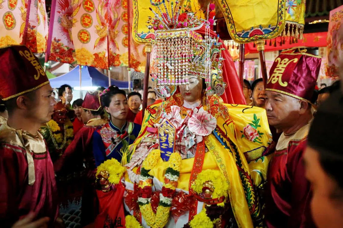 1840年的那尊妈祖与湄洲开基妈祖的形象一致,是黑面妈祖,身形娇小,只有在每年农历3月23日庆祝妈祖诞时才会被请出来,坐上轿子参加迎神赛会,前往滨海南码头坐游轮绕行新加坡南部海岸一周后才算完成出巡。