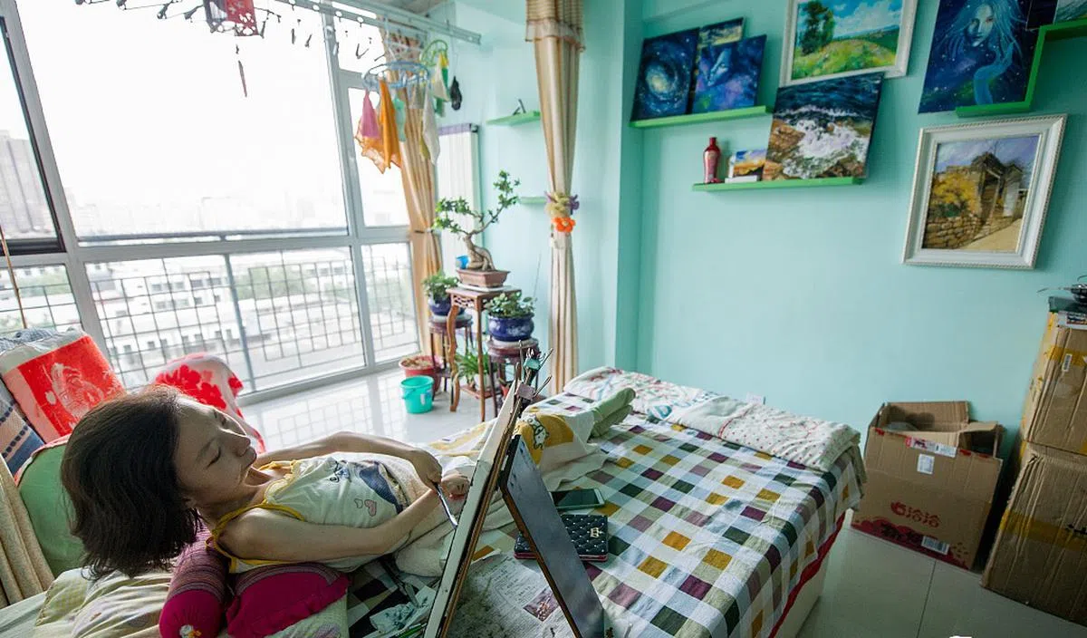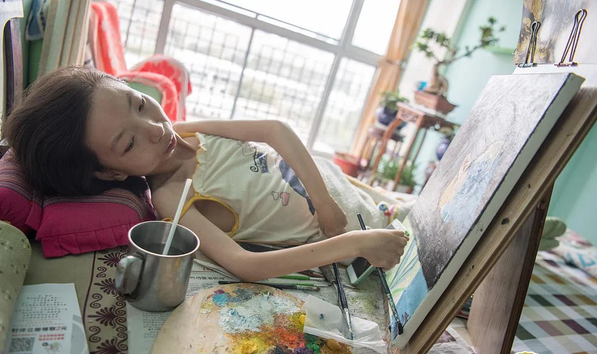 中国山西全身瘫痪女孩 3年作画300幅传递正能量