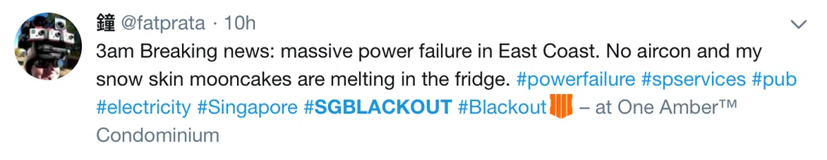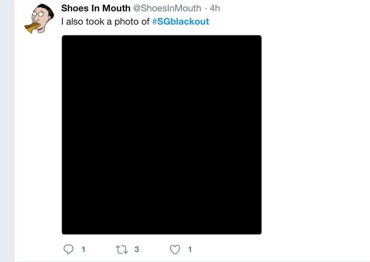 还有网民拍照上传到推特:“我拍了张照片纪念大停电#SGblackout。”
