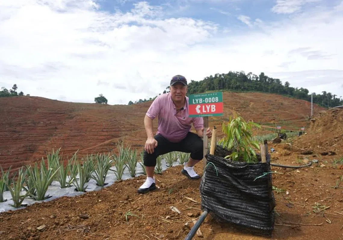 李永波投资了园内的1400棵榴梿树,占地33英亩。一如平日高调作风,李永波投资的园区以他名字拼音的首字母命名,叫“Lot LYB”,门牌上还镶嵌了一支几米高的羽毛球拍和一个羽毛球。