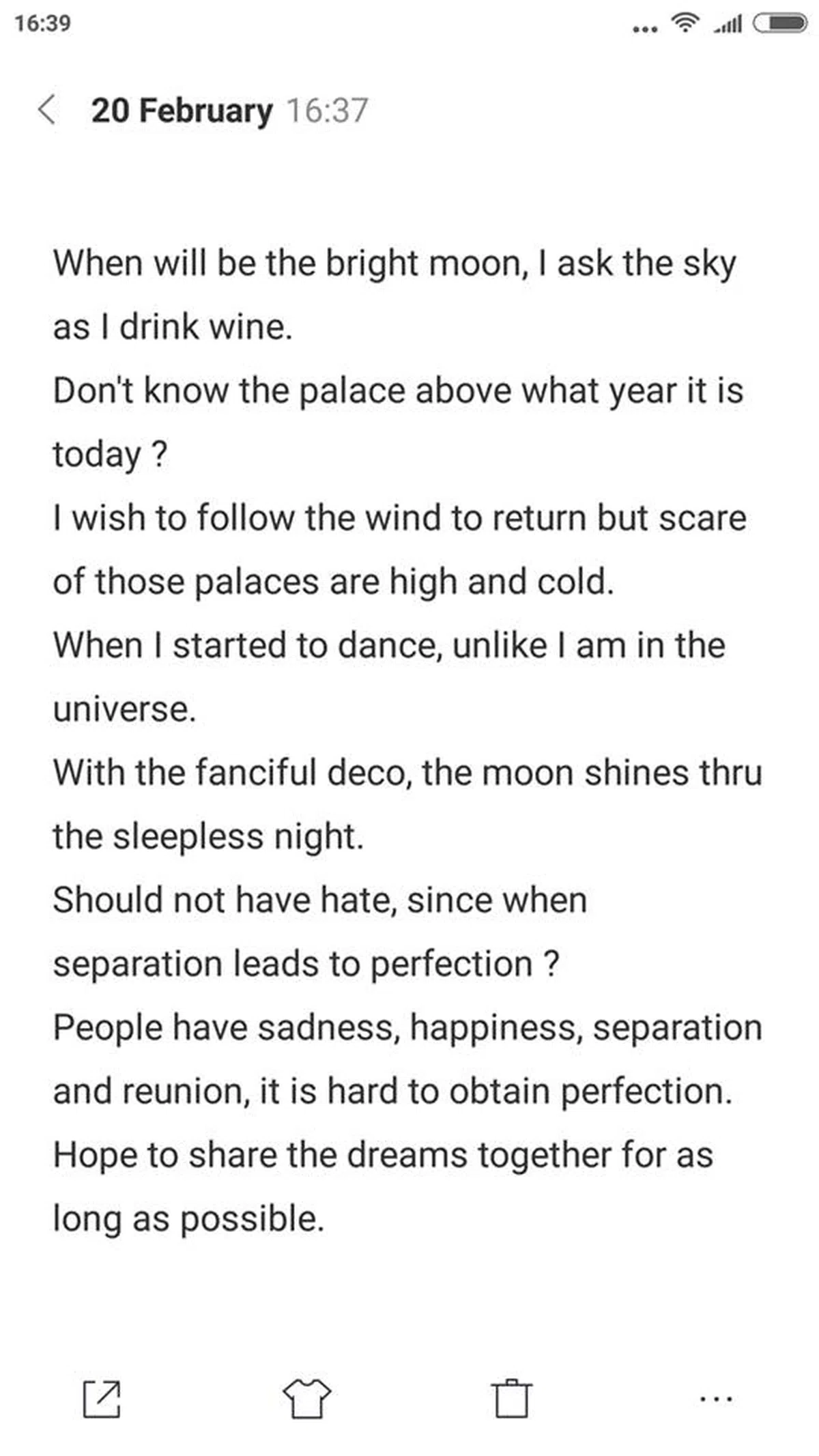有网友努力想了解这首词的意思,还贴心地为非华族同胞附上英文翻译: