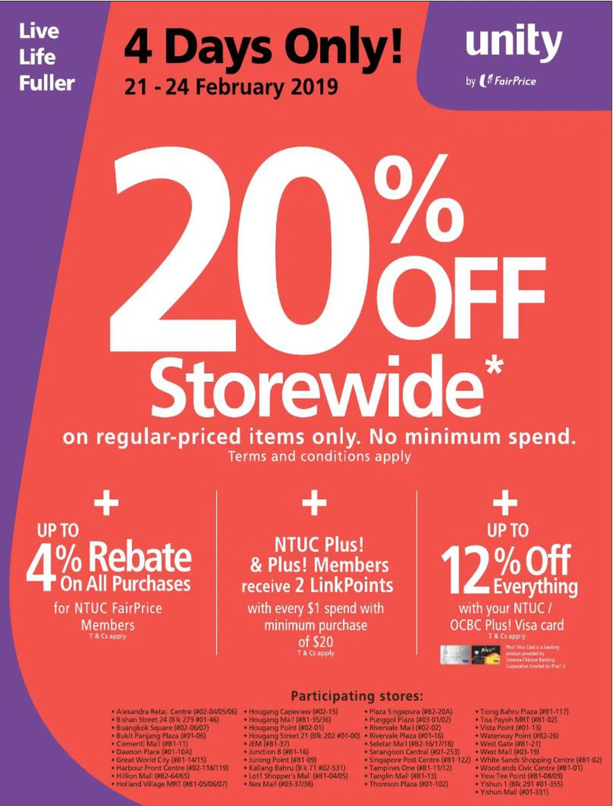 全场正价商品20%折扣,NTUC会员还可享有更多回扣。(本周末是最后机会)