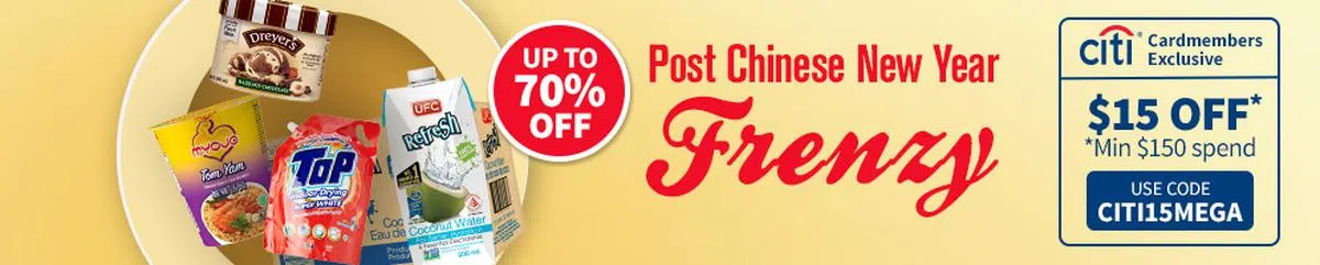 公众购买各种食品将能享有高达70%折扣。拥有花旗银行信用卡又消费满150元,可享有15元折扣,优惠码“CITI15MEGA”。