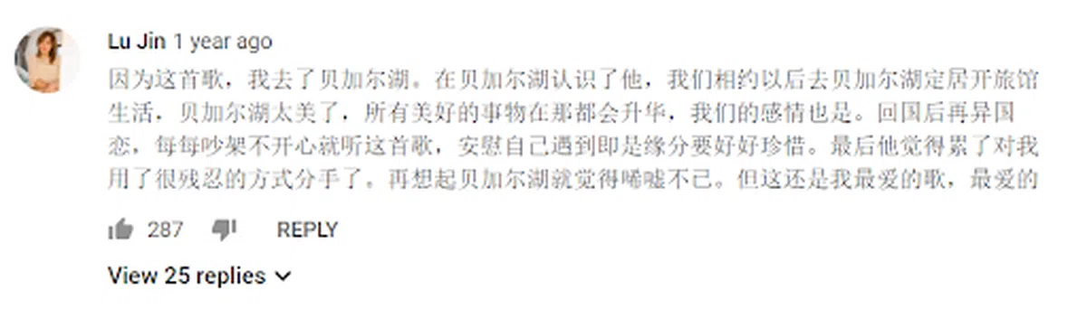 不仅仅是那一对夫妇,也有网友因为听了这首歌而决定到贝加尔湖去一睹它的风采与美丽。这位网友甚至还分享了自己的一段“凄美“的爱情故事: