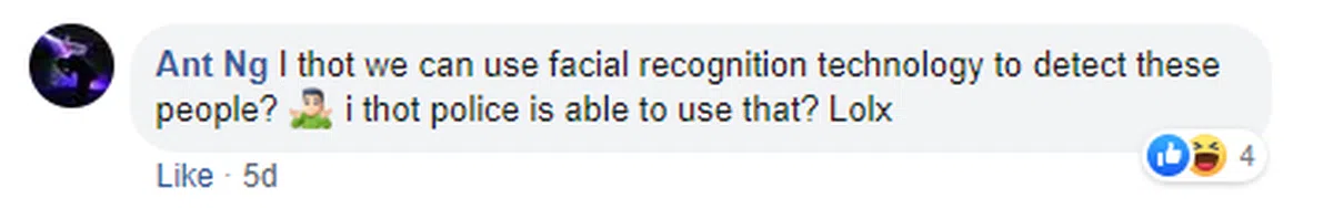 “我们不是能运用面部识别科技来辨认这些人吗?我以为警方已经能够那么做了。呵呵呵。”