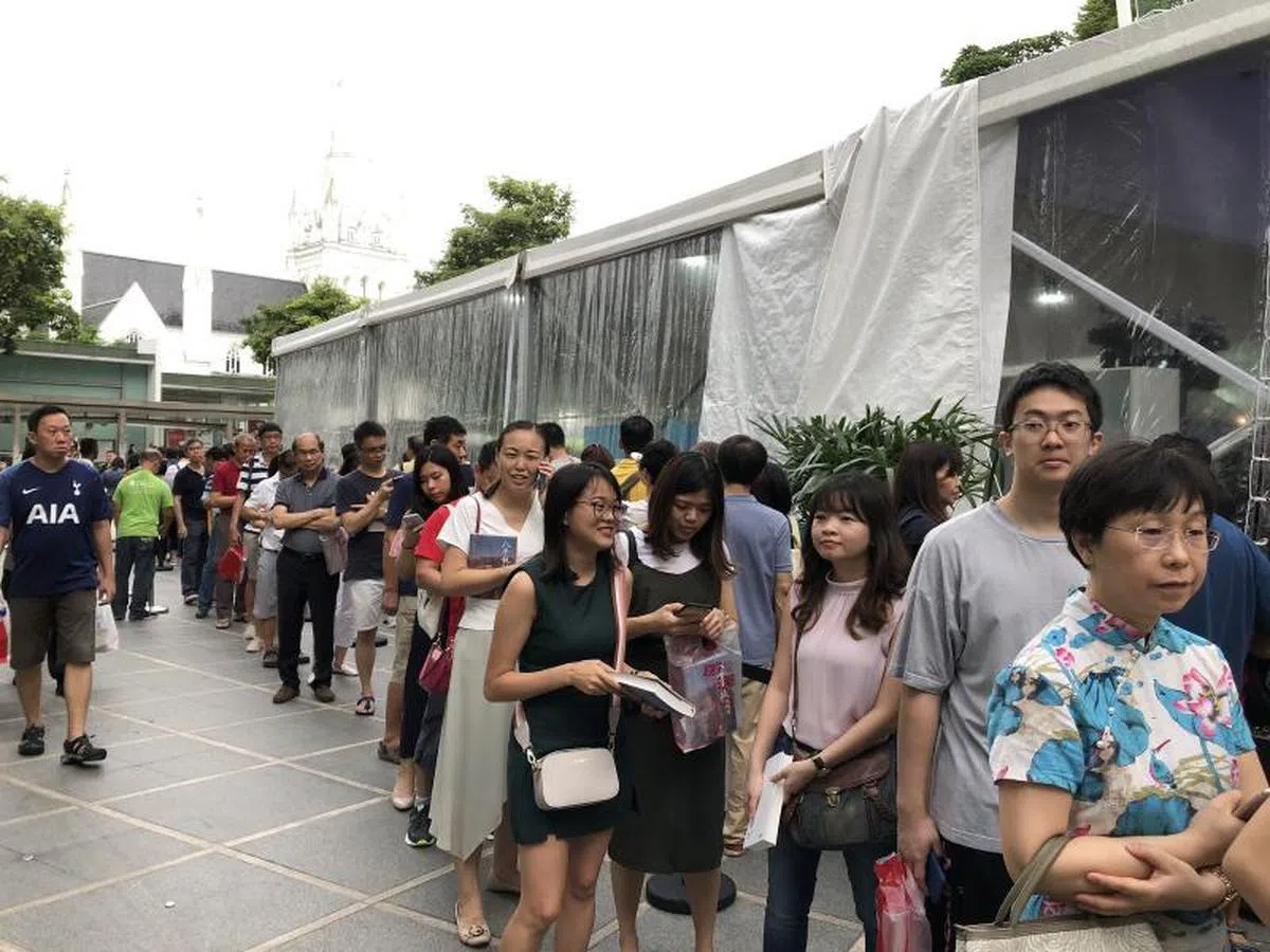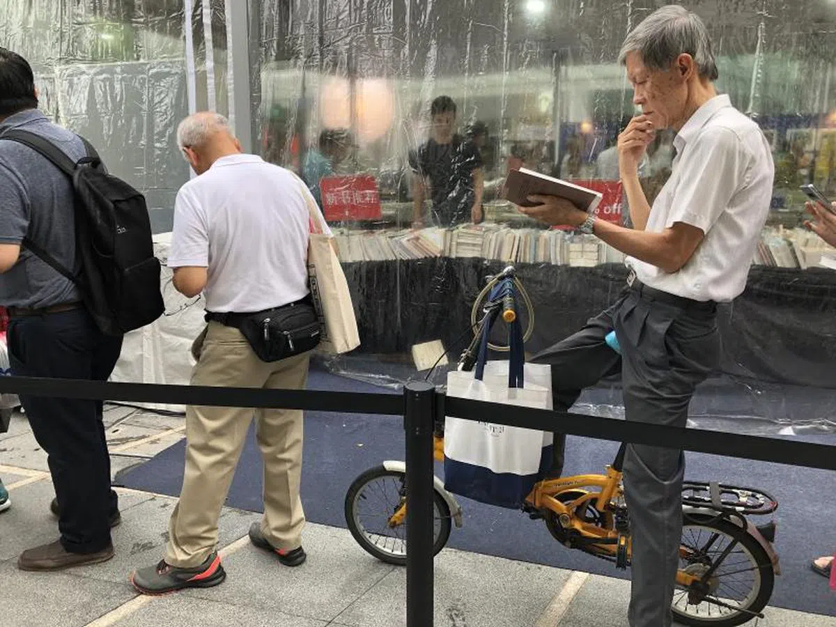 有了主办当局的这个特别声明,当红蚂蚁抵达新加坡首都综合项目(Capitol Singapore)的签书会现场时,就看到人手一书、边排队边阅读的美好画面,生动地诠释了今年书展的主题:相遇@阅读城市。放眼望去,男女老少都有,从纸袋来看,应该是刚刚在书展买到的新书,为的就是能让马英九签上名。红蚂蚁目测长长的人龙,预计有超过200人。
