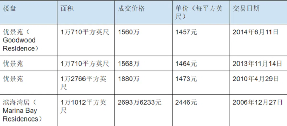 曾公开的要价是1560万元起跳,成交价最高的是3.3亿新元