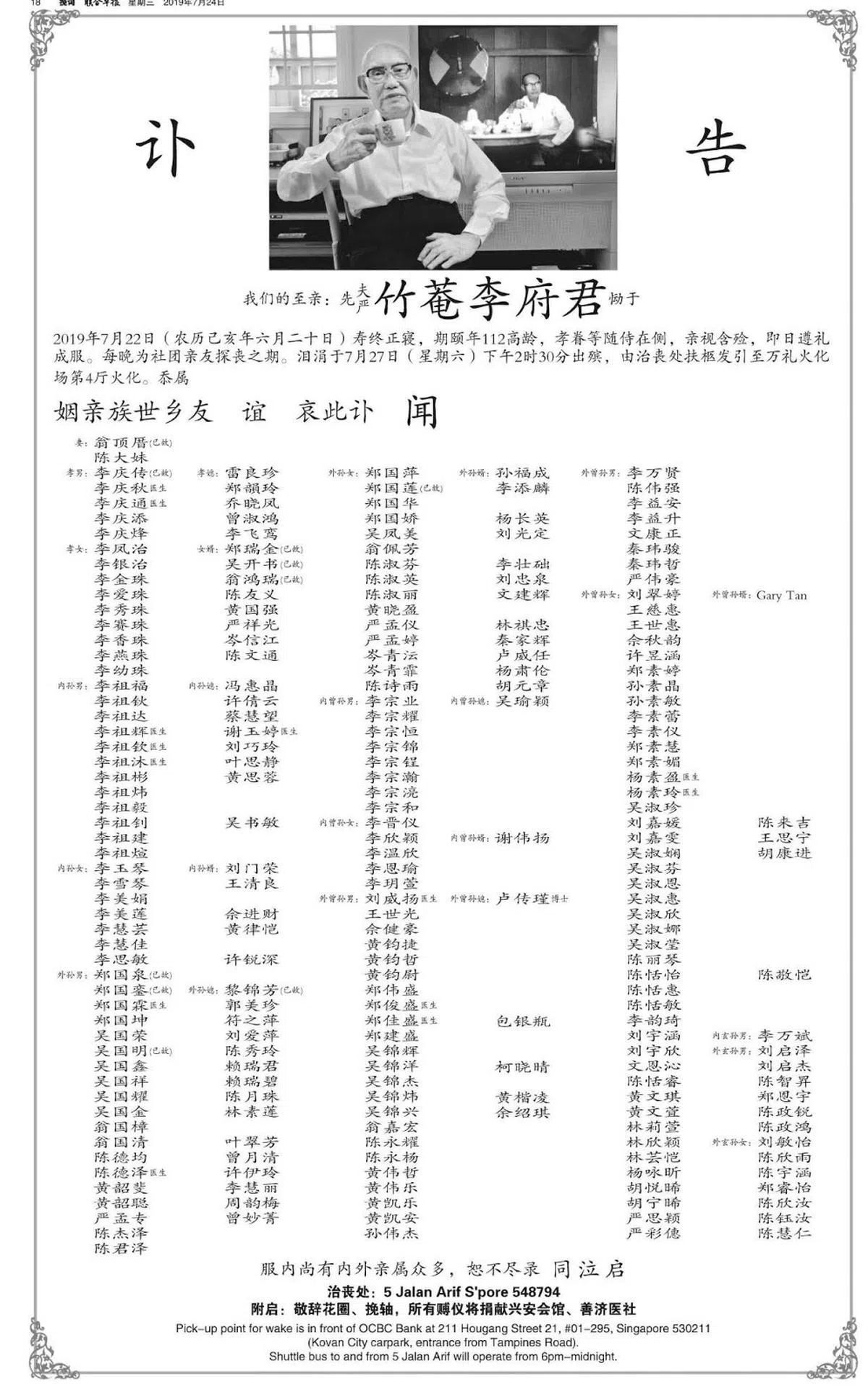 让人眼前一亮的是他亲属刊登的讣告。