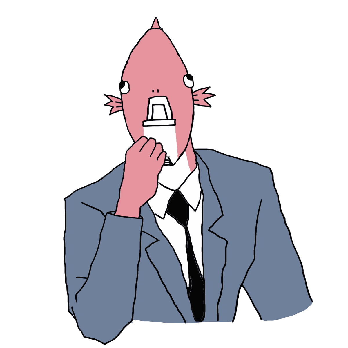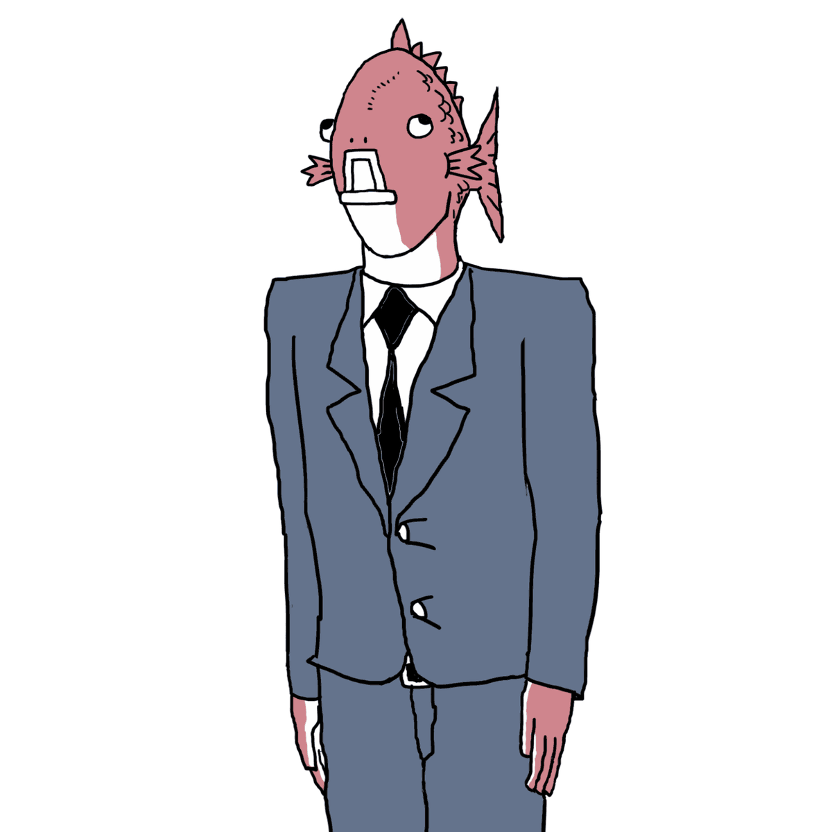 “不,他是在扮演没有戴上鱼帽的“社畜鱼类”(Business Fish)。”