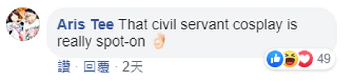 “这个新加坡公务员Cosplay太强大了,甚至对细节讲究到衣服上方左边还有新加坡的徽章。”