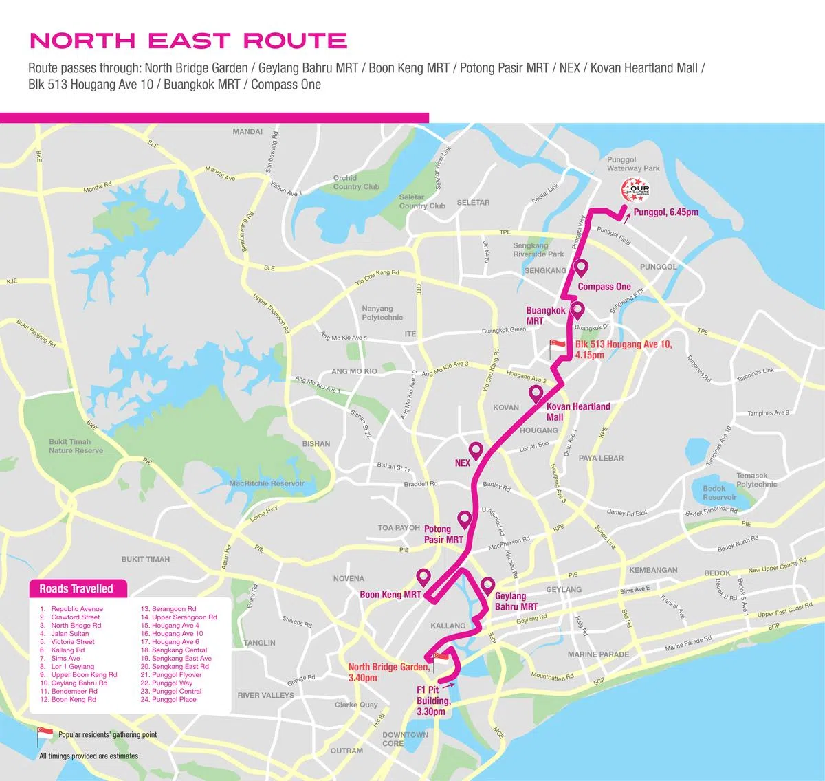 60辆武装部队和内政团队组成的机动部队将在周六下午2点半从F1维修大楼出发,兵分四路直取东、东北、北、和西部四个方向,沿途行经各大邻里地标: