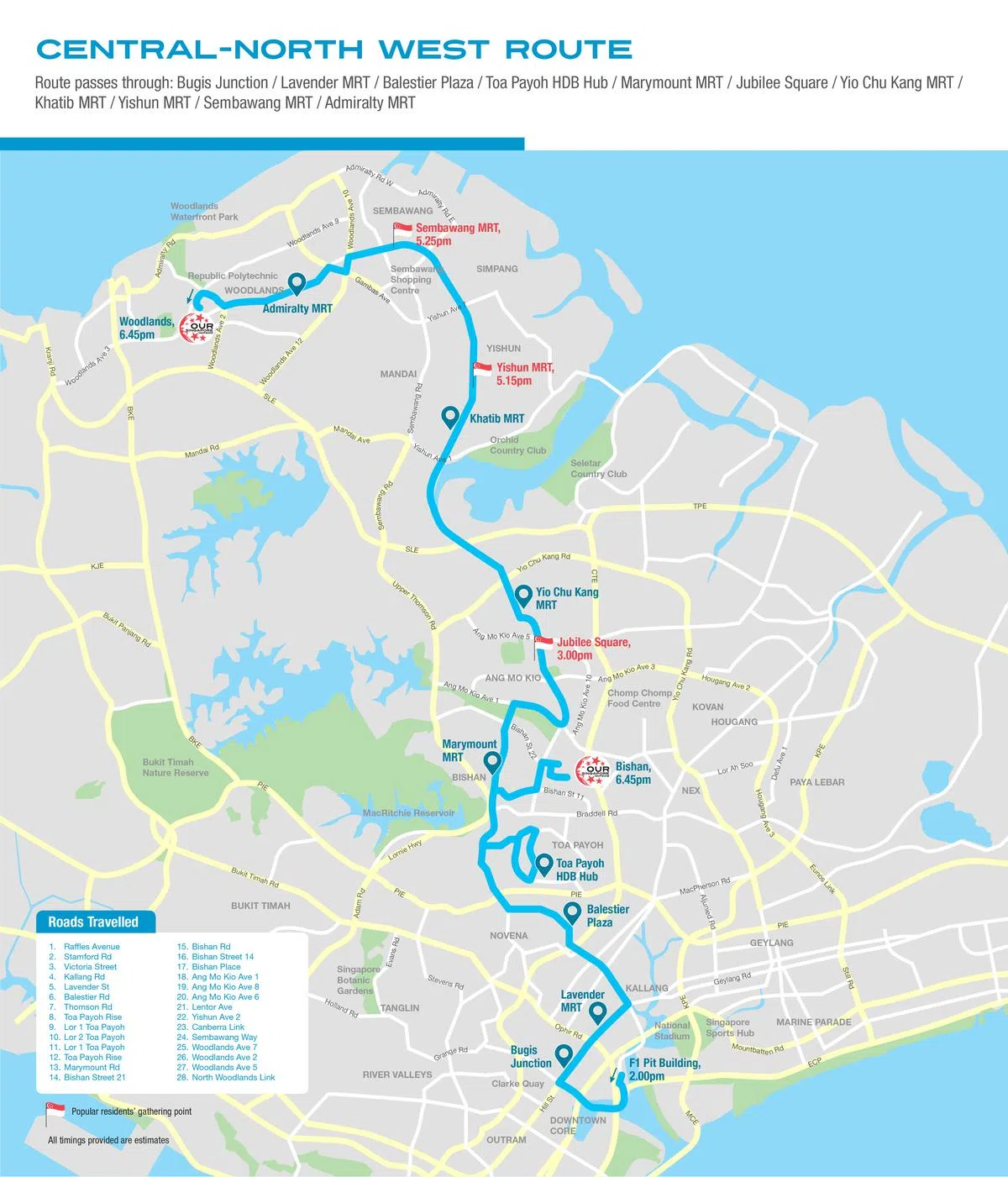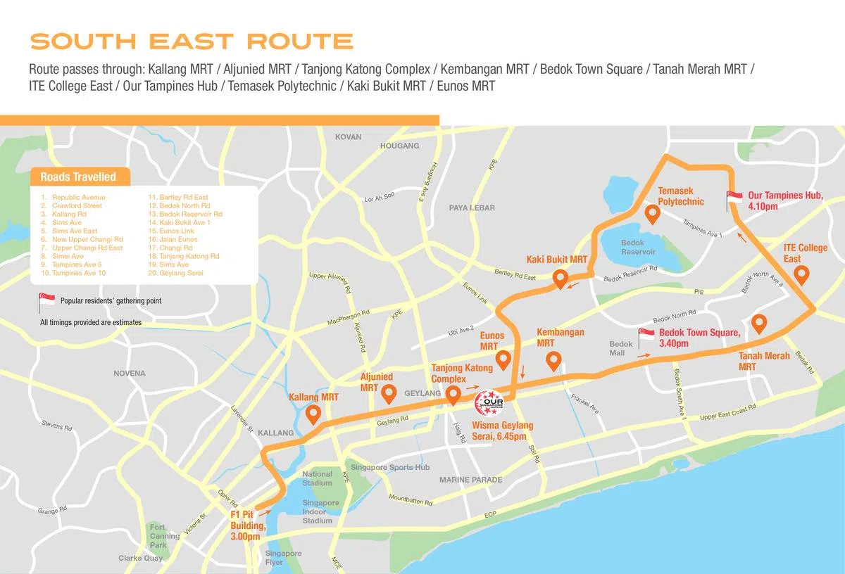 当天碧山、芽笼士乃、榜鹅、兀兰和裕廊东将有大型嘉年华庆祝活动,上述机动部队也会游行到这五个邻里与民同欢,机动部队预计会在傍晚6时45分抵达五个邻里的活动现场。