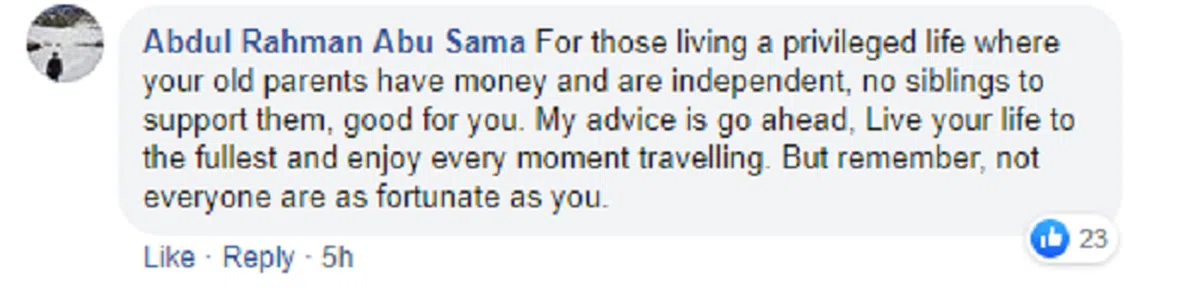 但也有人觉得这对小情侣是因为幸运,不愁吃不愁穿过着优质生活,加上他们的父母都独立,应该也有钱,所以才可以不顾一切去追梦。“我的建议是,尽情享受你的生活,享受旅行的每一刻。但是请记住,不是每个人都像你一样幸运。”