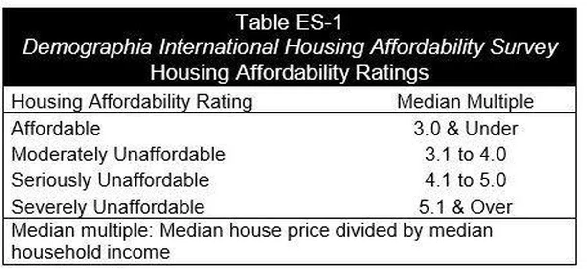 国际公共政策顾问机构Demographia最新公布的2019年度国际房价负担能力调查显示,
