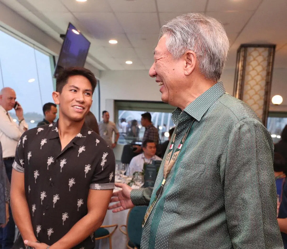 不过红蚂蚁在网上爬了爬,就在国务资政兼国家安全统筹部长张志贤的面簿上发现了与马丁的合照。原来马丁这次在赛事上还参与了星光熠熠的“名人见面会”,在鸡尾酒会上与身为主办国“东道主”的张志贤相谈甚欢。