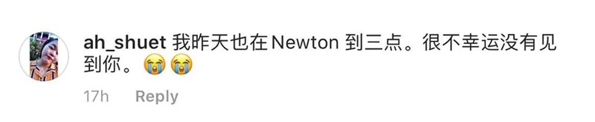 不少粉丝在Instagram上留言表示求偶遇,也有粉丝因错过与童年偶像近距离接触的机会而感到惋惜,有一名粉丝留言说,自己当时也在纽顿一带,却偶遇不到林志颖,完美的诠释了什么叫“世界上最近却也最遥远的距离”。