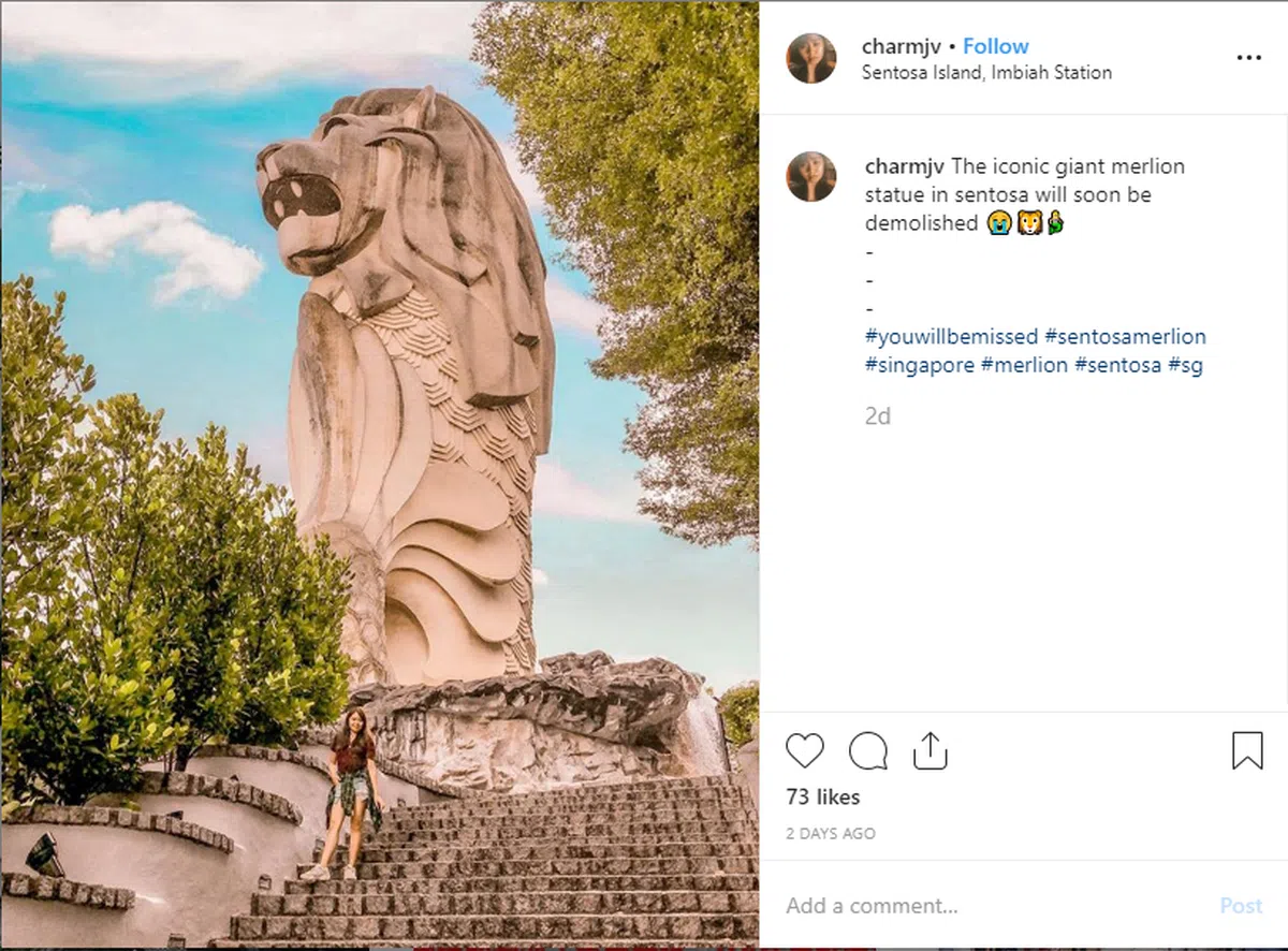 身为外国旅客来狮城的必备打卡地点之一,红蚂蚁的邻居分享说,在国外的亲朋好友听到这座鱼尾狮要拆时,都开始翻找以前曾与这座鱼尾狮拍过的合照,发简讯到群组里表示不舍之情。