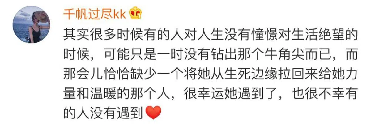 也有暖心的网民留下了温暖的话语,希望这番话能够鼓励和支撑女孩继续活下去: