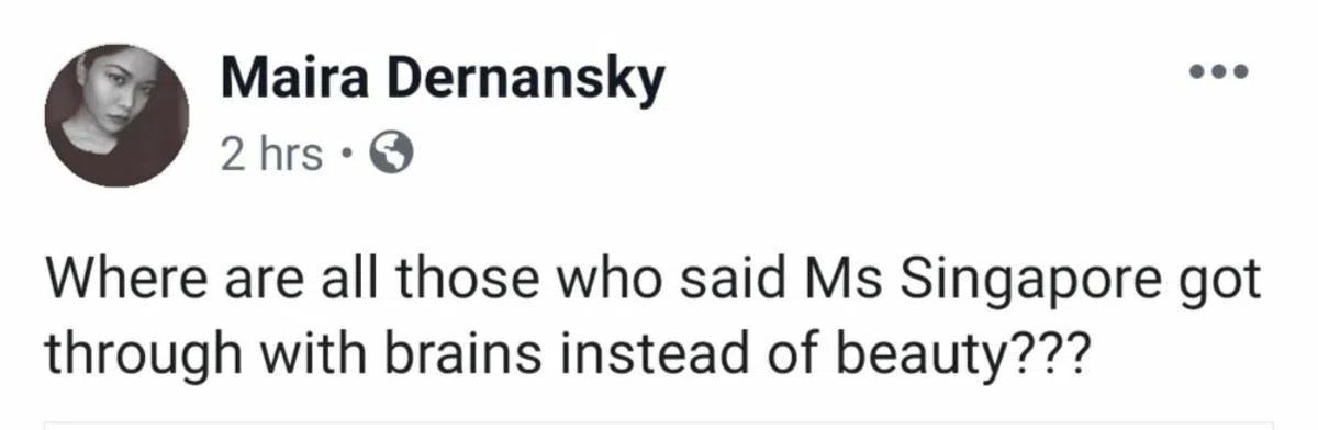 无疑的是,即使新加坡美姐最后没冠冕,她已经赢得了大家的掌声,还有很多曝光率。