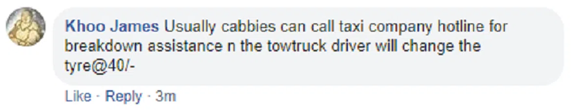 通常发生故障时,德士司机会打电话回公司求助,而拖车公司会到场换轮胎,并收取40新元的费用。