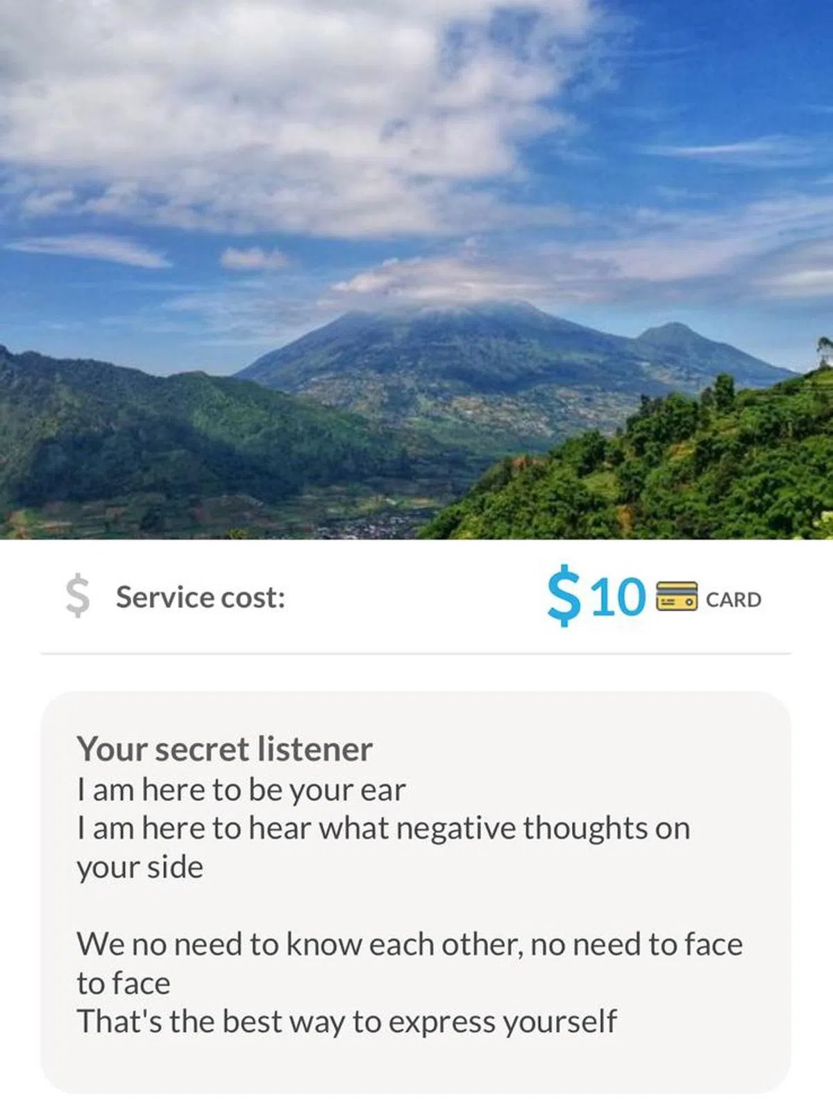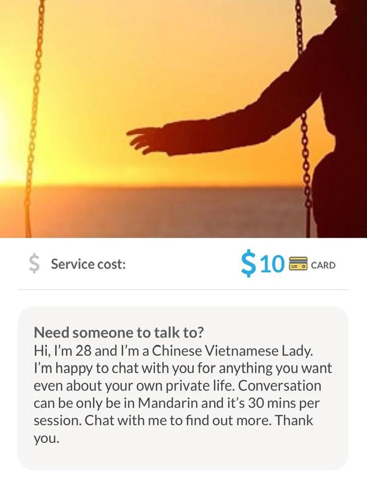 不怕,你现在也可以不需要在意他人的眼光,通过电话对陌生人大吐苦水了。只需要十新元,就可以向陌生人倾诉自己的烦恼,就算得不到解决问题的方法,至少能够释放压力啊。