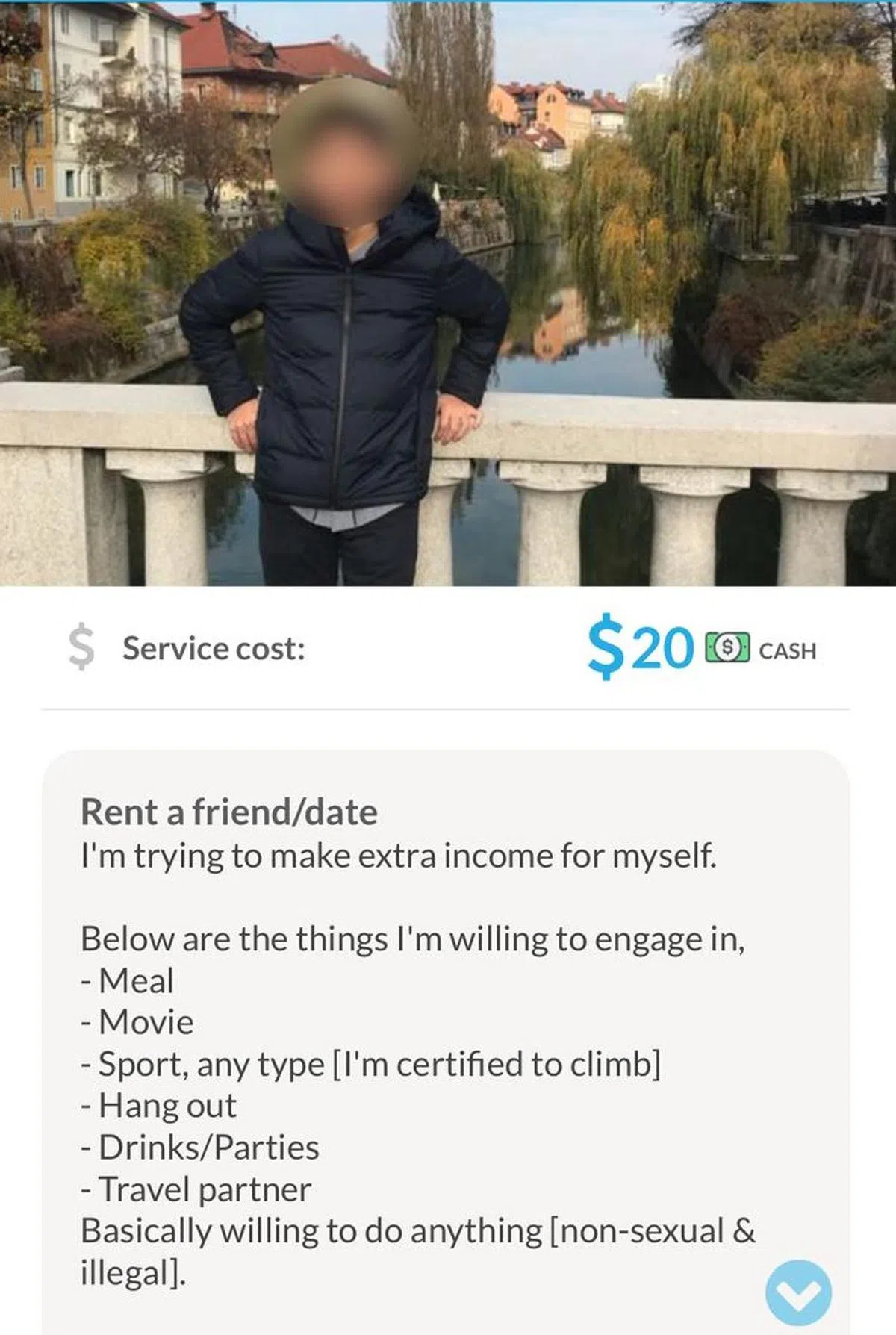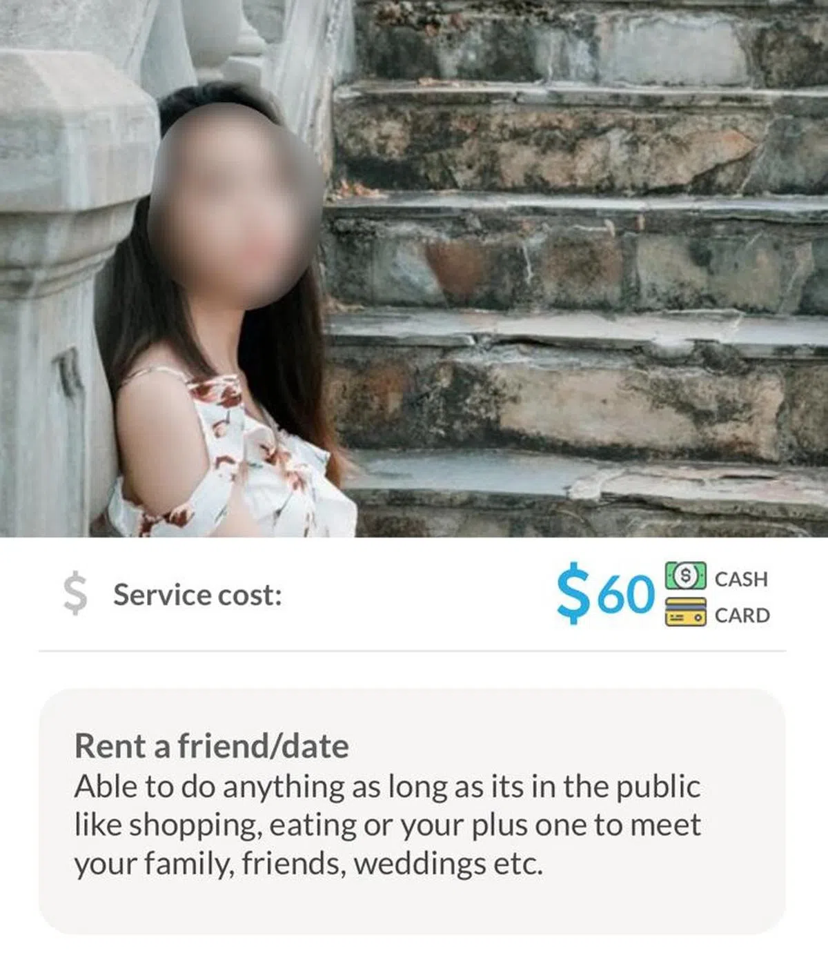 逢年过节免不了面对催婚催交往的三姑六婆,要是害怕遇见这种尴尬情况,可以用这个应用程序来帮你“征友”,找个男朋友或女朋友,当然费用是按小时算的。