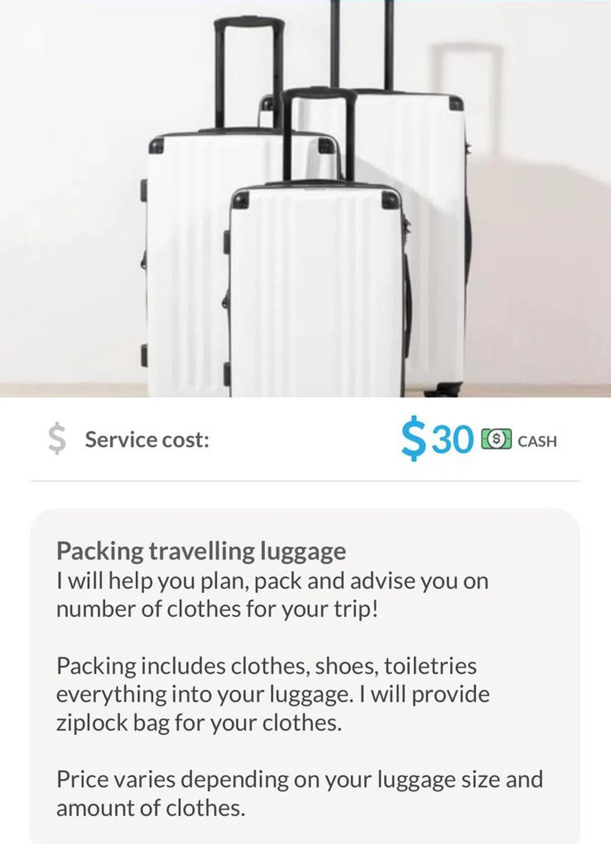 如果蚁粉连行李都懒得自己收拾,也有人愿意为你效劳的。