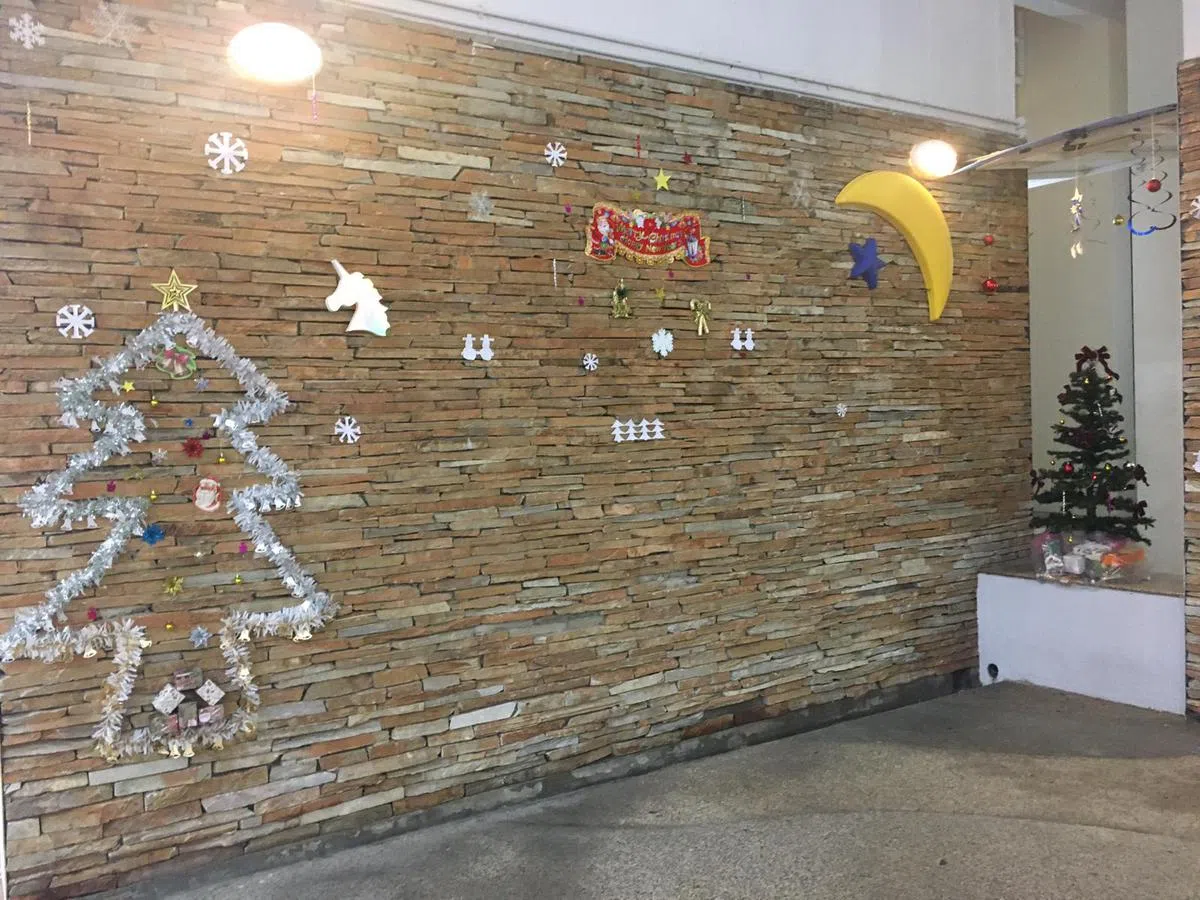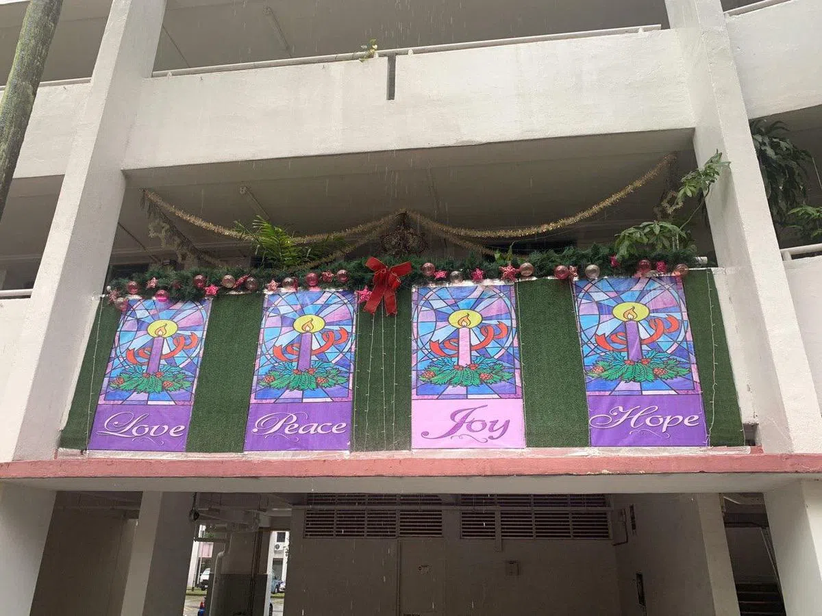 今年,菲利普选择打安全牌,没有再在组屋外檐上摆放任何会造成安全隐患的东西,比起往年的圣诞装饰来说相对朴素了许多。