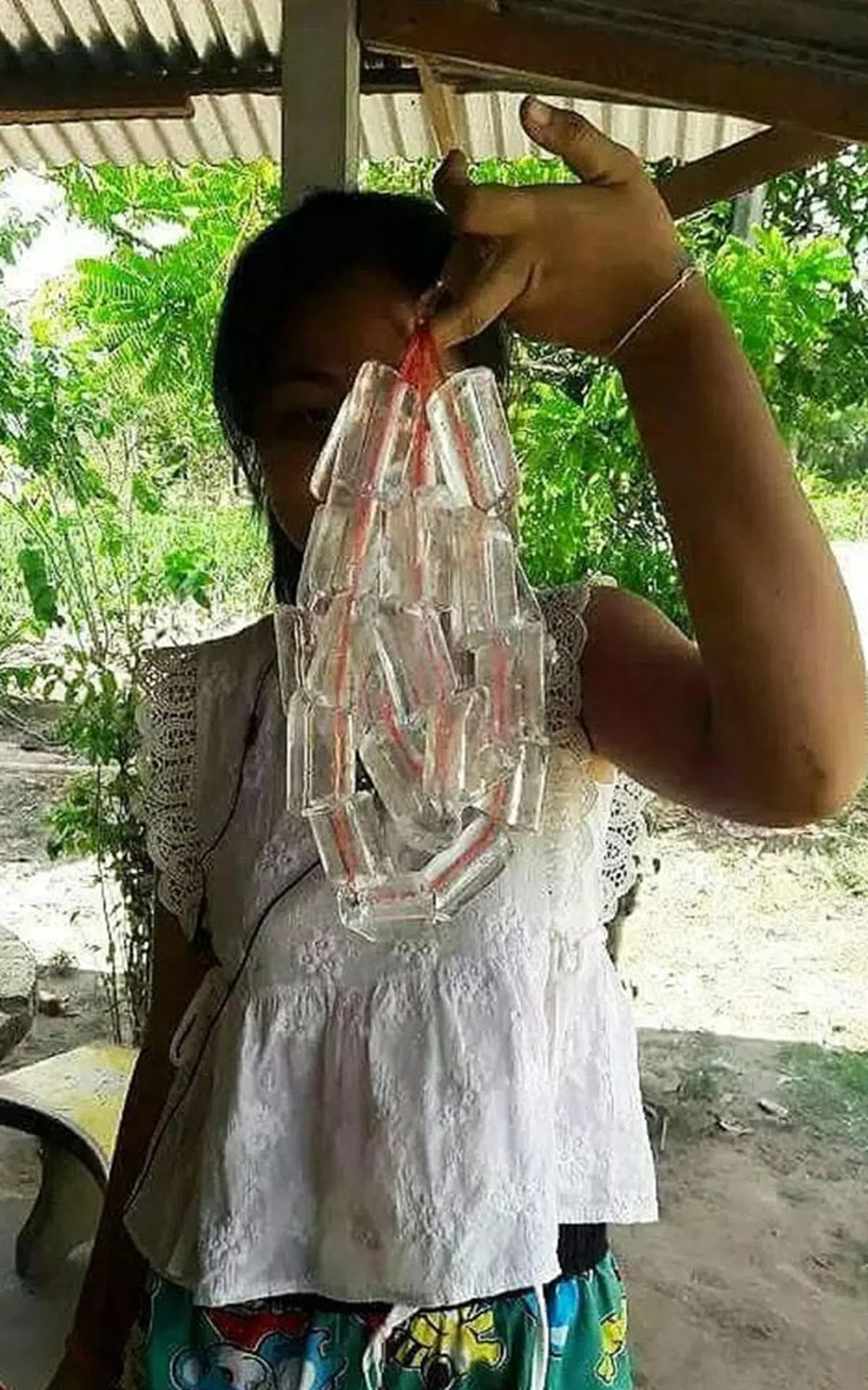 没错,用一根绳子将冰块穿起来,就可以轻松提回家。如果最主要的目的是不冻伤手的话,这个方法算是可行(但走路速度一定要超快,)