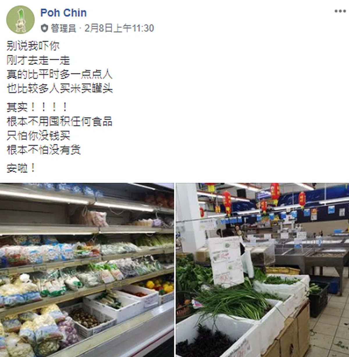 “真的比平时多一点点人,也比较多人买米买罐头……其实,根本不用囤积任何食品,只怕你没钱买,根本不怕没有货,安啦!”
