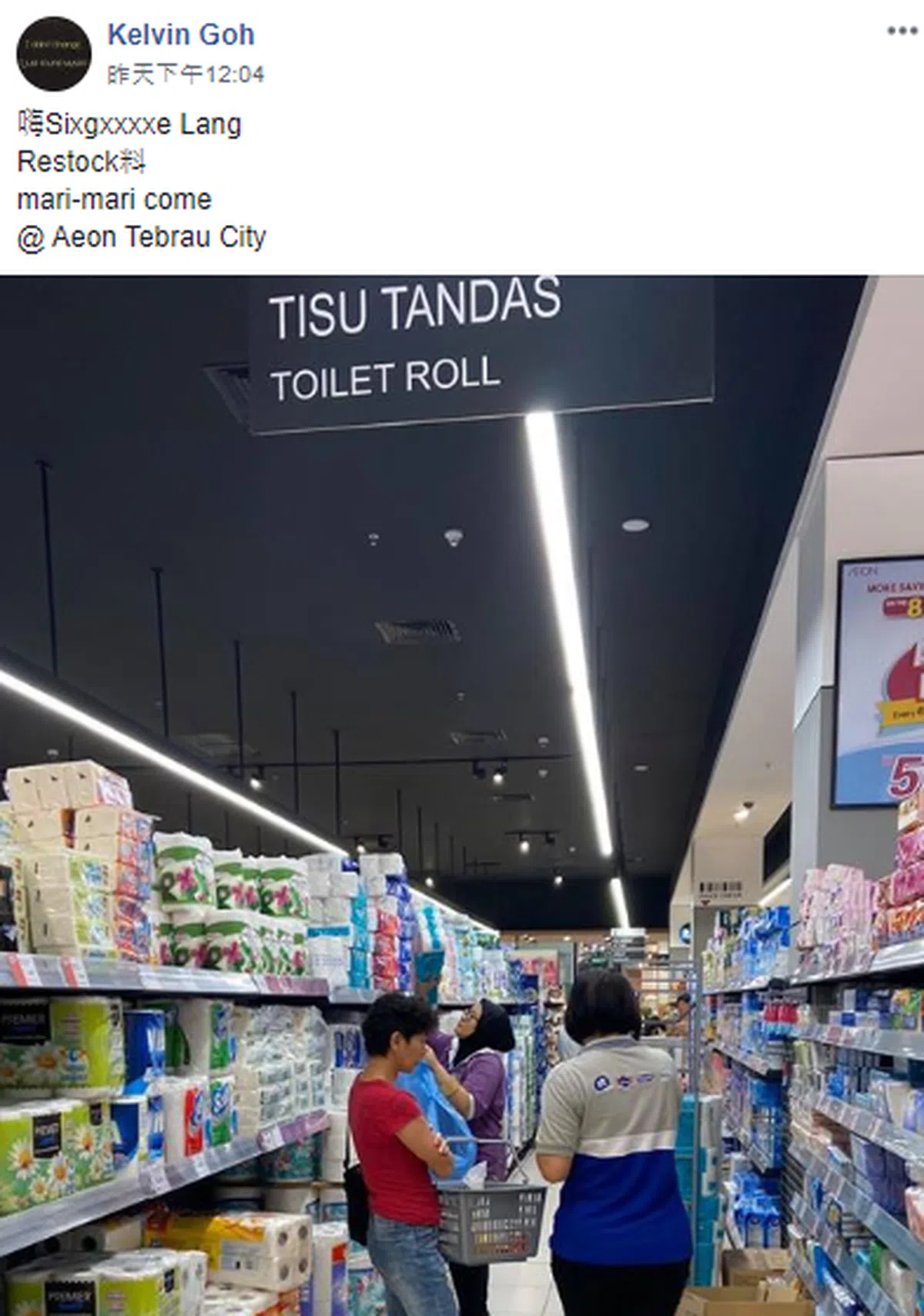 一名在地不佬永旺广场工作的超市职员阿明(45岁)告诉《联合晚报》,摆放厕纸、白米、食油、面粉、快熟面、罐头食品等的货架很快就被清光了,让他们平均每个小时就得补一次货。