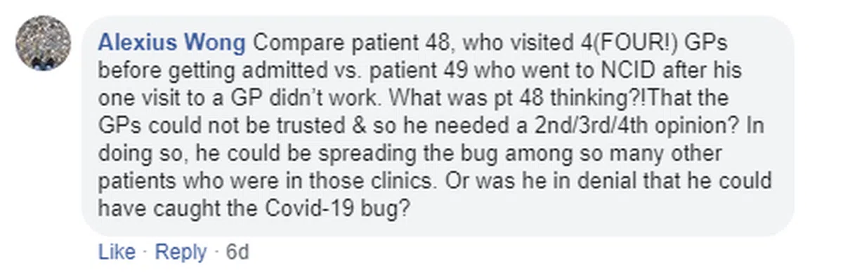 在2月1日出现症状后,他九天内五次(2月2日、4日、7日、9日、10日)分别到四家诊所求医,都没被诊断出患冠病19,只有在最后一次(10日)到医疗中心照X光,才被直接送入国家传染病中心,隔天被确诊。