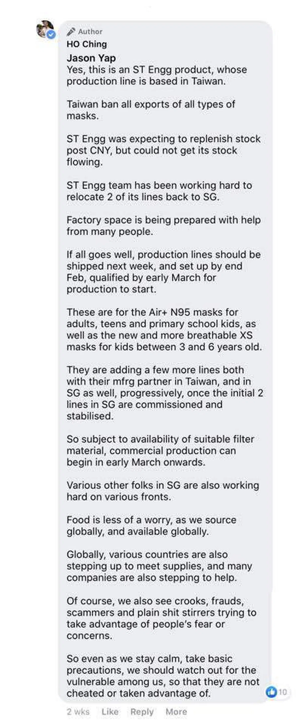 看来新加坡政府真的有在默默地为国人寻找更多口罩的货源啊。