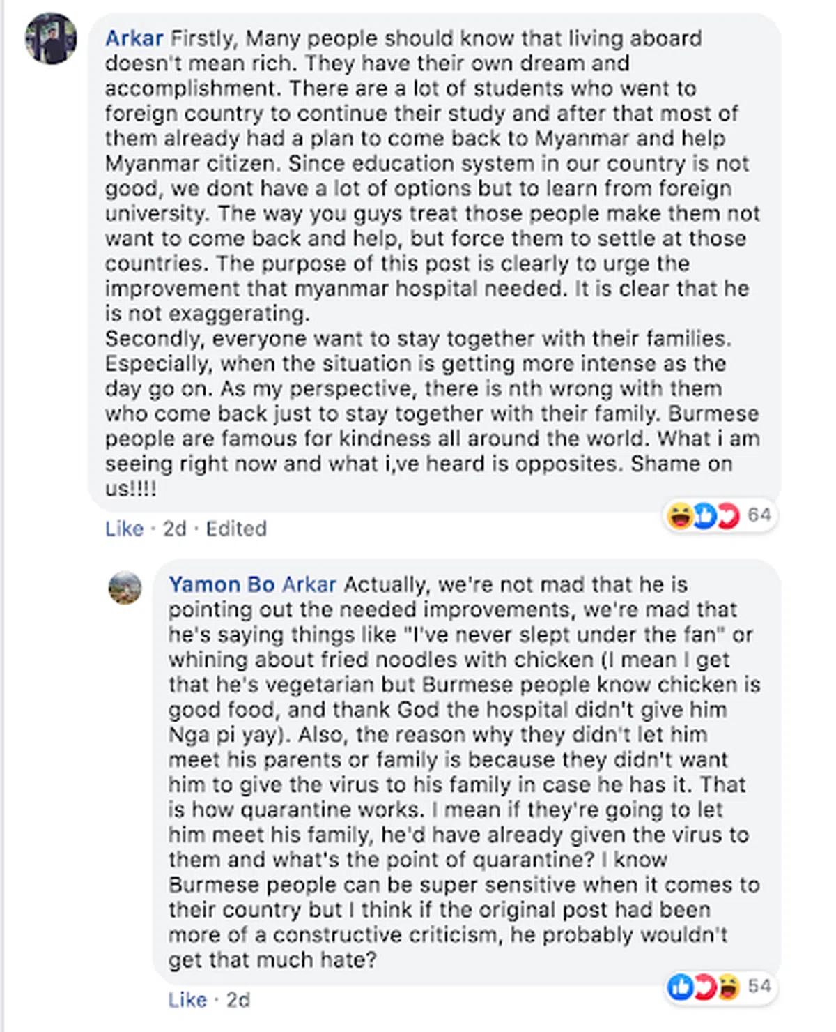 但也有网民认为,虽然他在贴文中提到的那些“没吹过风扇入睡”、“没有热水”等娇生惯养的言论着实让人听了不舒服。但其实他所描述的并非捏造,而是真真实实的隔离环境。