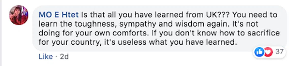 这位名叫Zwal ZM的网民在个人面簿上分享了自己在缅甸的隔离经历,同时狠批缅甸隔离设施非常简陋。