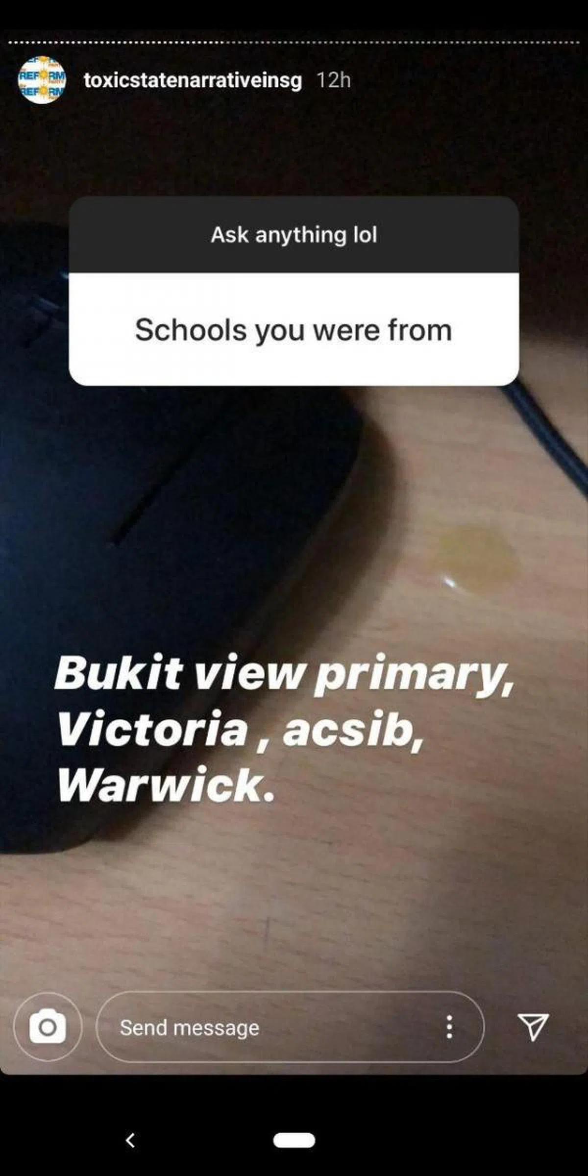“百德小学(Bukit View Primary School)、维多利亚、英华中学(自主)、华威(Warwick)。”