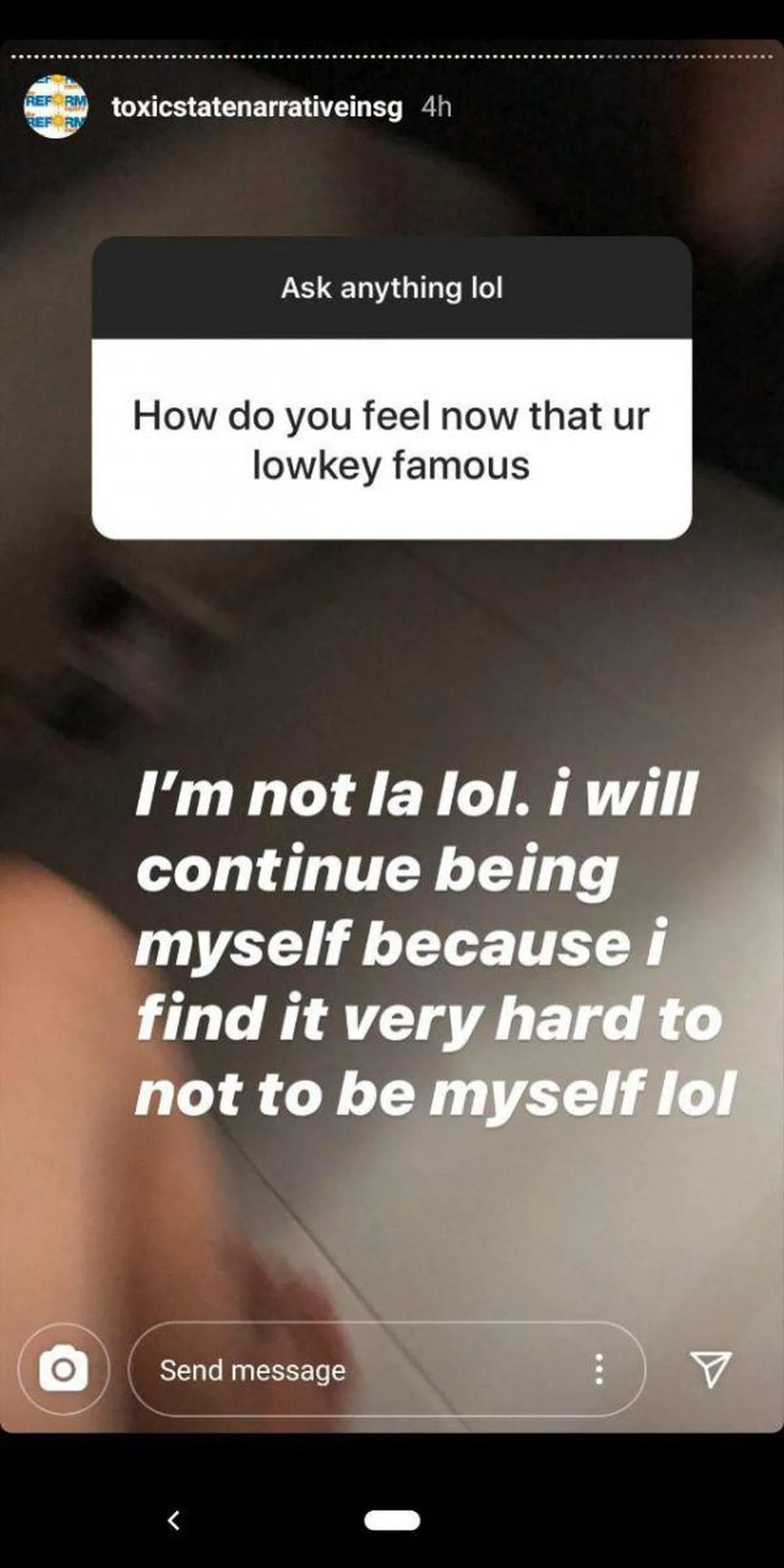“我才没有(出名)啦。我会继续做回我自己,因为我觉得很难不做回自己。放声大笑(LOL)。