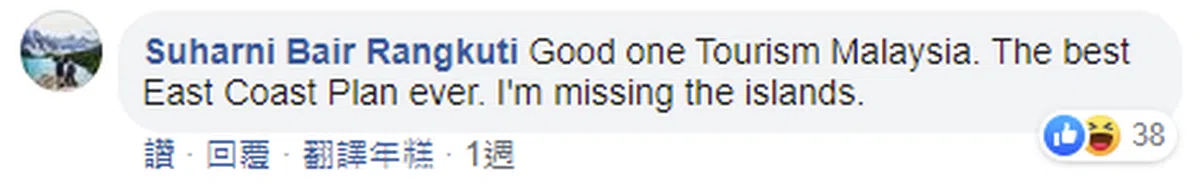 “马国旅游局好样的,这是史上最棒的东海岸计划。我好想念那里的岛屿啊!”