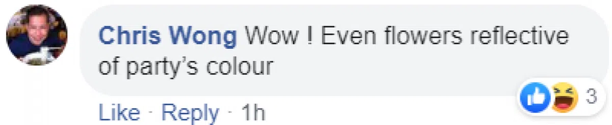 有网民注意到餐桌上的花朵颜色,似乎代表了行动党(粉色)和工人党(蓝色)。