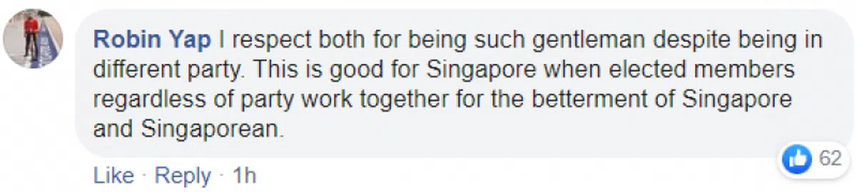 大部分网民的留言中都感谢陈川仁和毕丹星完美诠释了什么叫#新心相连(SGunited) #群策群力共创未来(SGtogether)。虽然他们隶属不同政党,却能像谦谦君子以礼相待,为造福新加坡百姓的生活而努力,这是新加坡的福分。