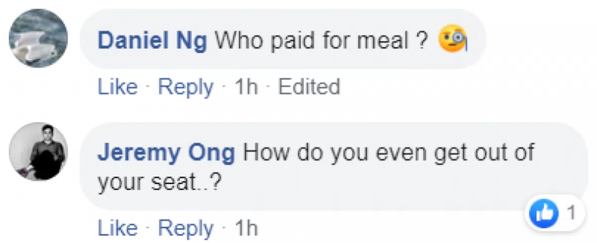 当然也有网民好奇这餐谁掏钱请客?甚至有网民注意到他倆所坐的沙发手柄都紧贴桌子,将他们“关起来”,很想知道他们是如何进出座位。