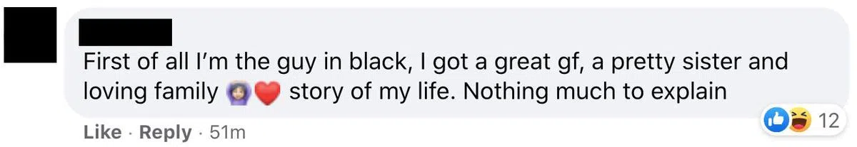 这个事件发酵不到三小时后,几名“主角”纷纷在网上留言解释照片中这四人的关系,以及当时的“来龙去脉”,同时对上载照片的Diaozui Hotline Memes面簿专页恶搞陌生人图片的行为深表不满。