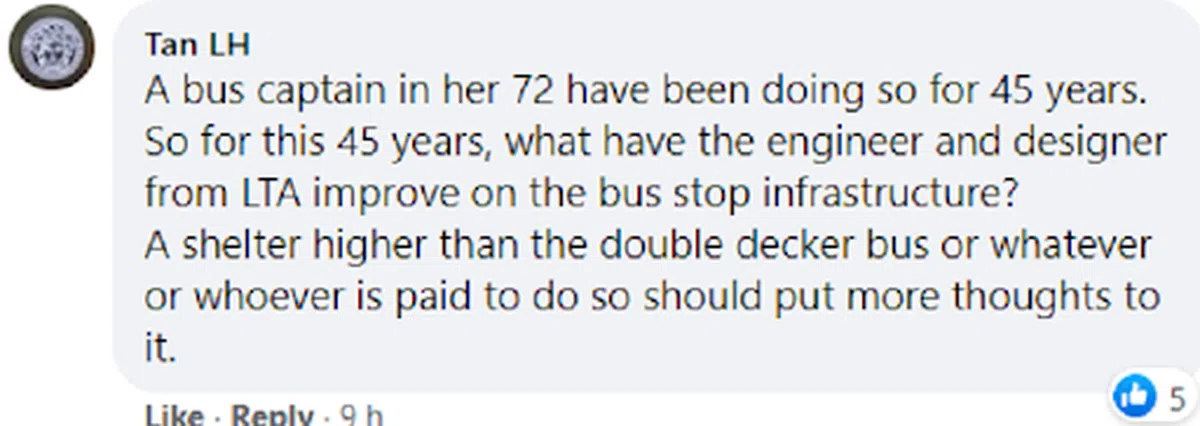 也有网民从这个事件中看到新加坡的巴士车站或许可以考虑设计得更人性化一些,毕竟新加坡经常会出现间歇性阵雨。