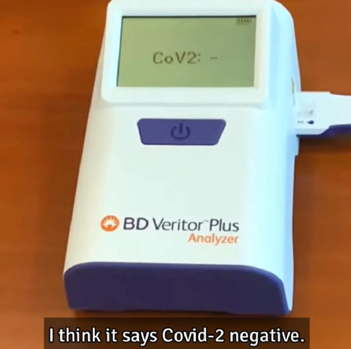 读取仪的屏幕上出现:冠病病毒阴性(CoV2:-)的信息,证明维文没有感染冠病。