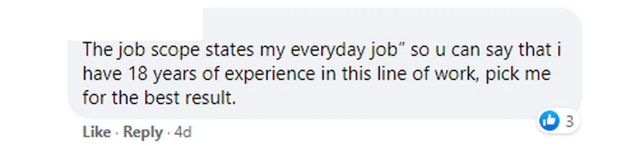 “这份工作的职责正好是我每天的日常‘工作’,我在这个领域已经有18年的经验,要得到最佳效果就选我”。