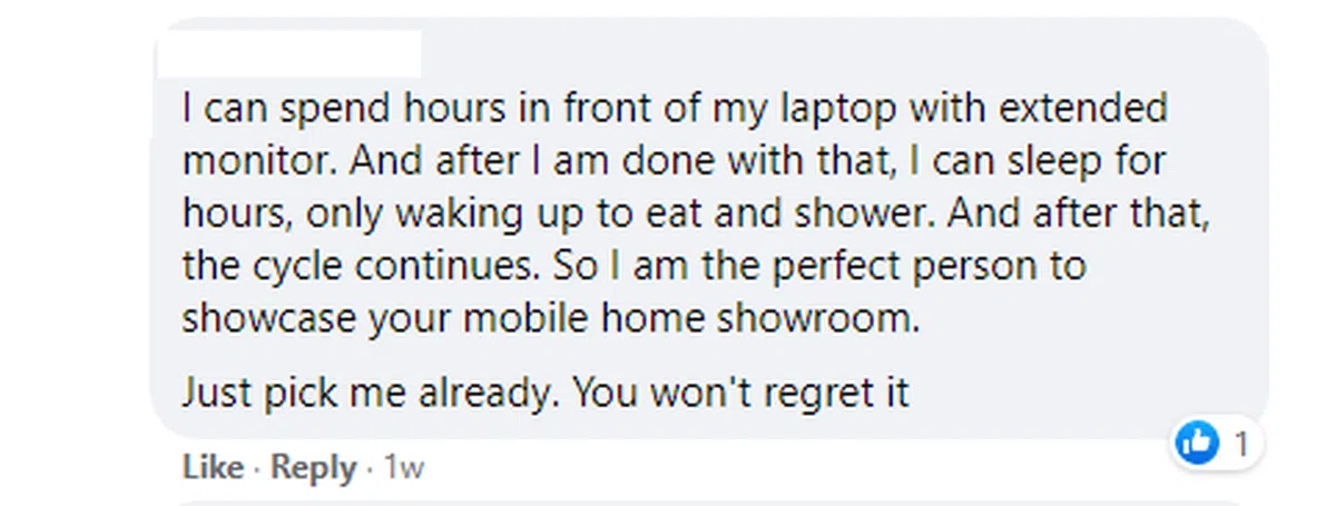 在住家办公室里睡觉、工作、玩游戏和看电视?我专门为此接受过专业培训!有鉴于人力部的居家工作条例,我已成为一个拥有六个月工作经验的优秀候选人。