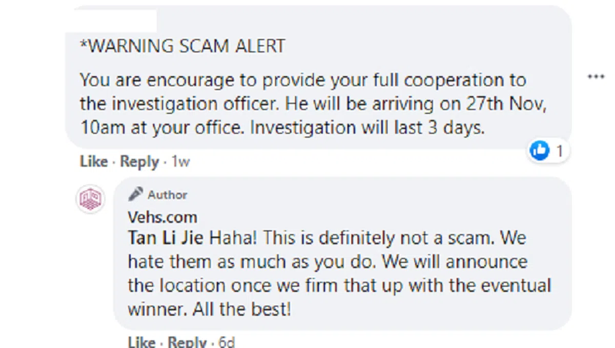“这绝对不是骗局。我们和你们一样讨厌他们(骗子)。一旦我们确定了最终的获胜者,我们就会公布地点。”